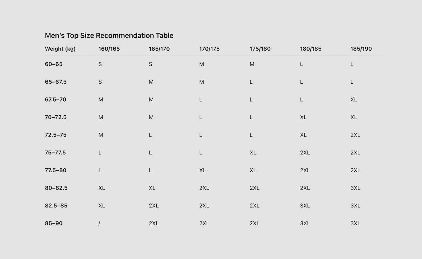 | Size | Height | Chest/CM | Shoulder Width/CM | Length/CM |
