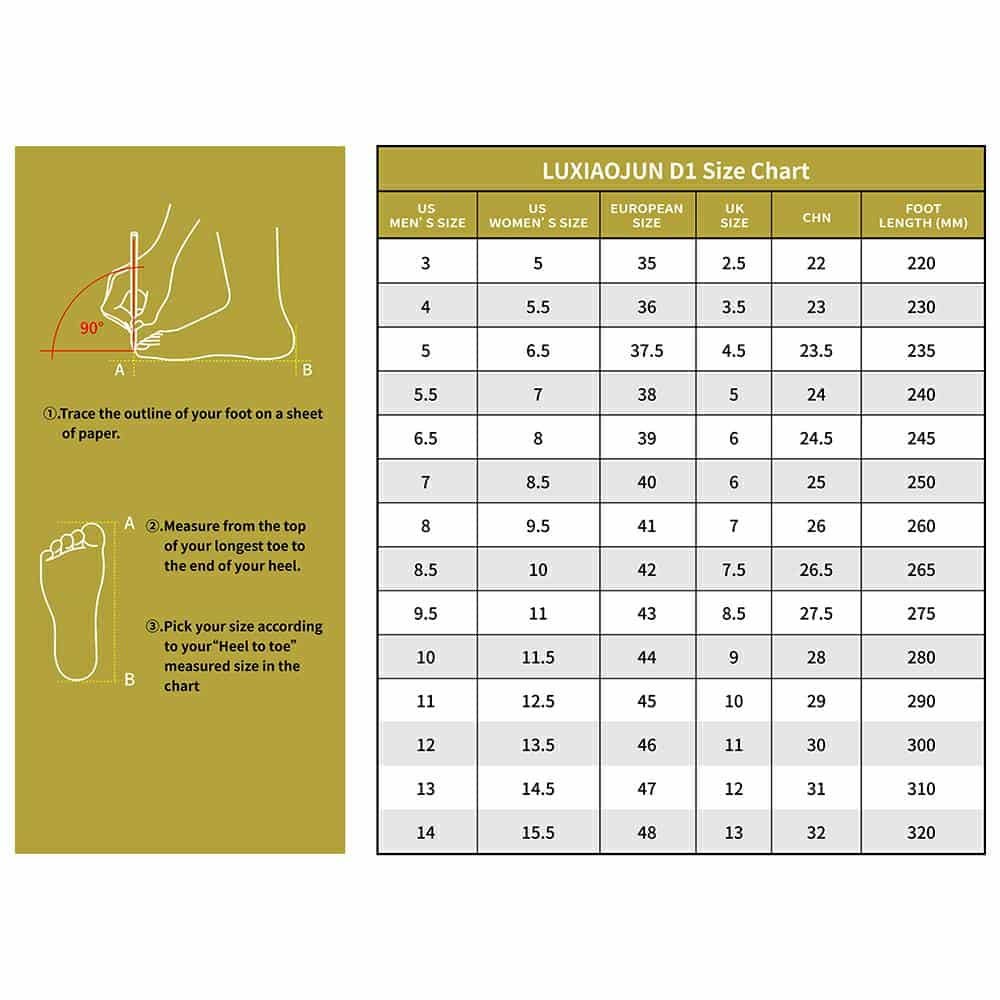 NOTE: If you have a high instep or wide feet, it is recommended to choose one size larger.