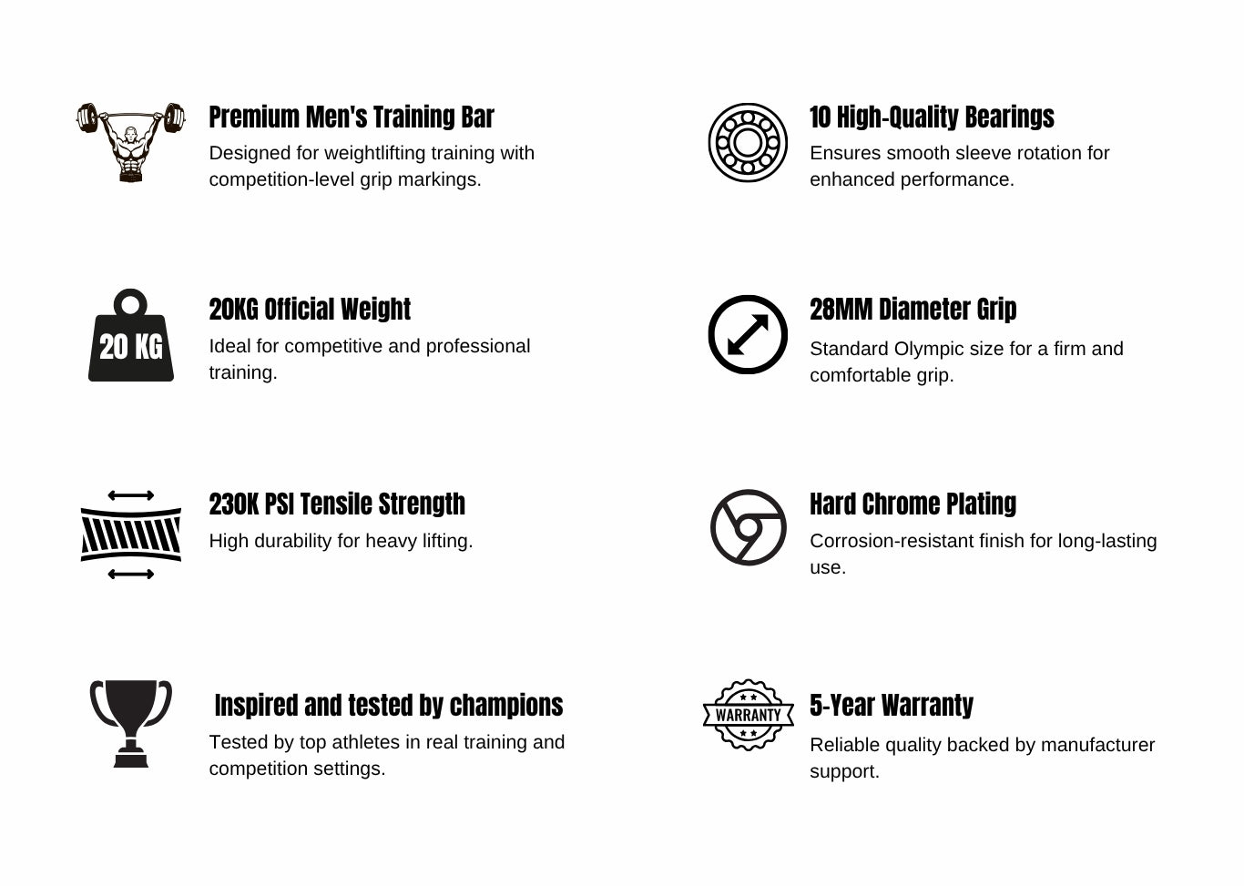 Built for durability and long-term heavy lifting performance, maintaining structural integrity under repeated high loads. - Competition-Grade Knurling